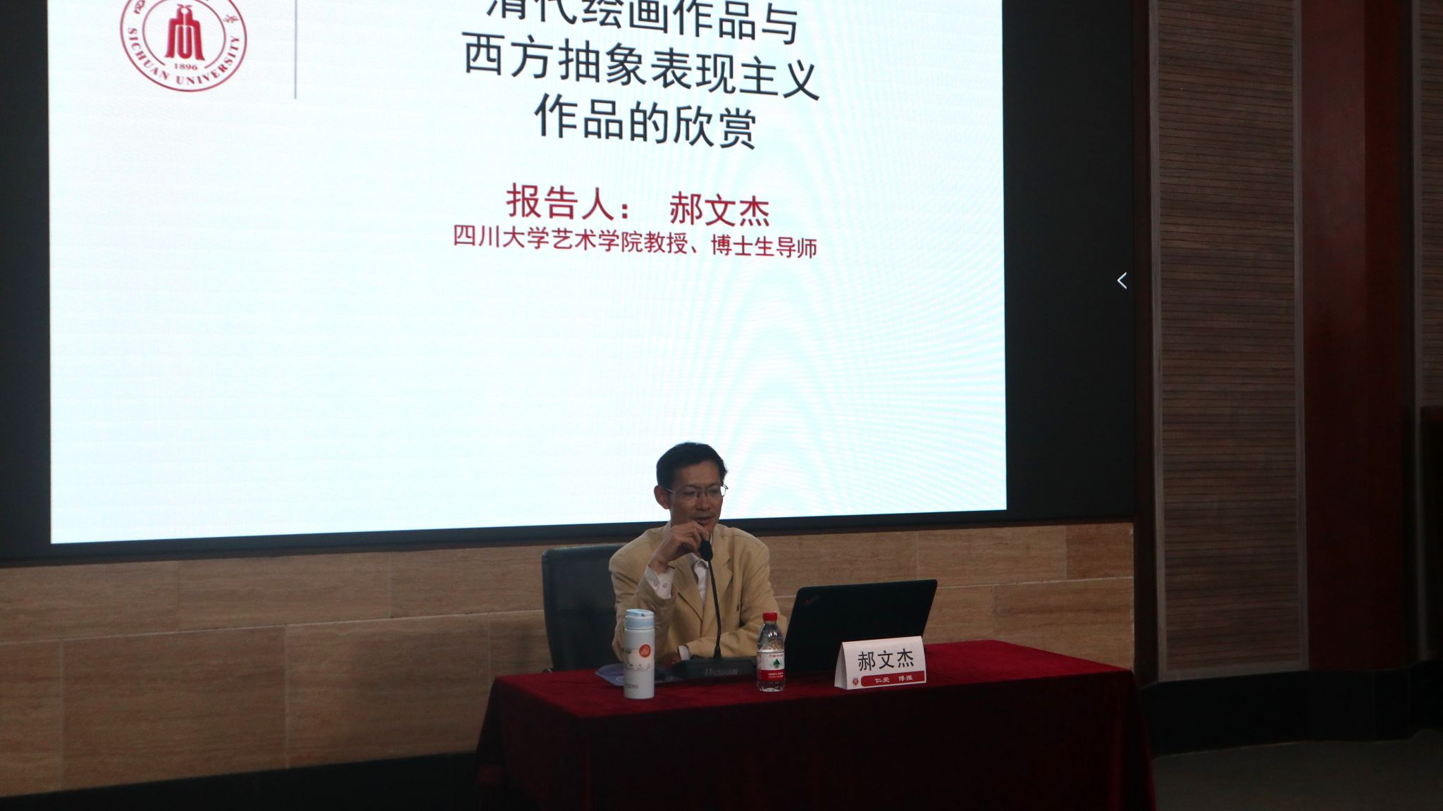 10月17日,四川大学艺术学院郝文杰教授做客文学院名师讲坛,带来了题为“清代绘画作品与西方抽象绘画的内涵诠释研究”的讲座。讲座由文学院曹建教授主持,学校相关师生参加了本场讲座。