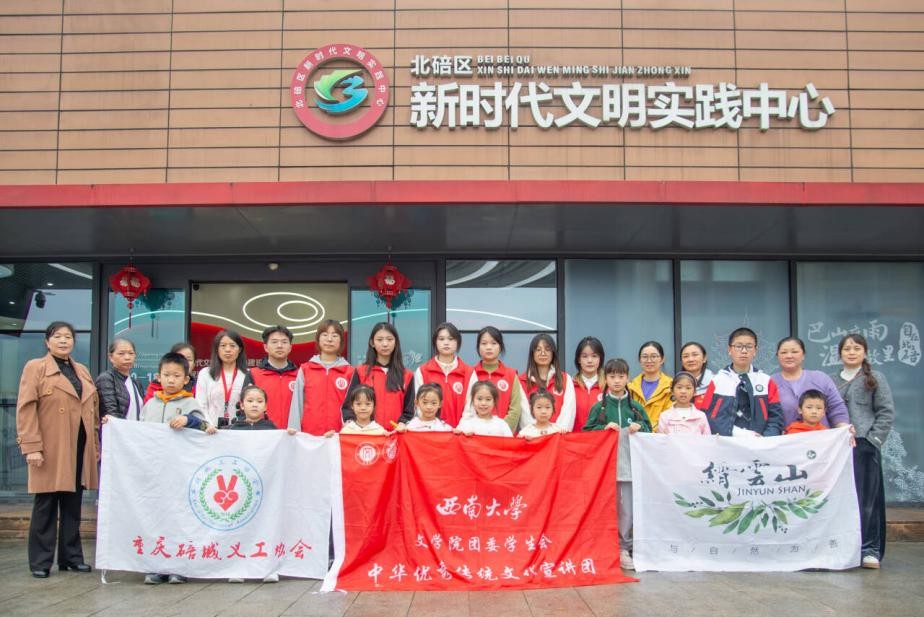 11月8日,文学院在北碚区新时代文明实践中心举办“油纸载烟雨,笑语逐伞扬”传统文化宣讲会,宣讲团成员及北碚区部分儿童参与活动。
