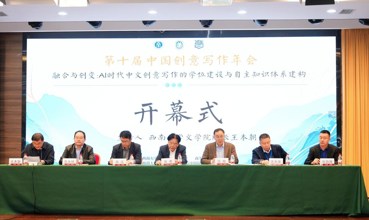 2025年10月31日至11月2日,第十届中国创意写作年会在西南大学举行。本届年会以“融合与创变:AI时代中文创意写作的学位建设与自主知识体系构建”为主题,由西南大学、上海大学、高等教育出版社联合主办,由西南大学文学院、上海大学中国创意写作研究院、高等教育出版社上海事业部等共同承办。来自全国100余所高校及相关机构的近400名专家、学者、作家、教育者及研究生齐聚山城,以线上线下相结合的形式,共探中文创意写作的多元形态、发展路径与未来方向。
