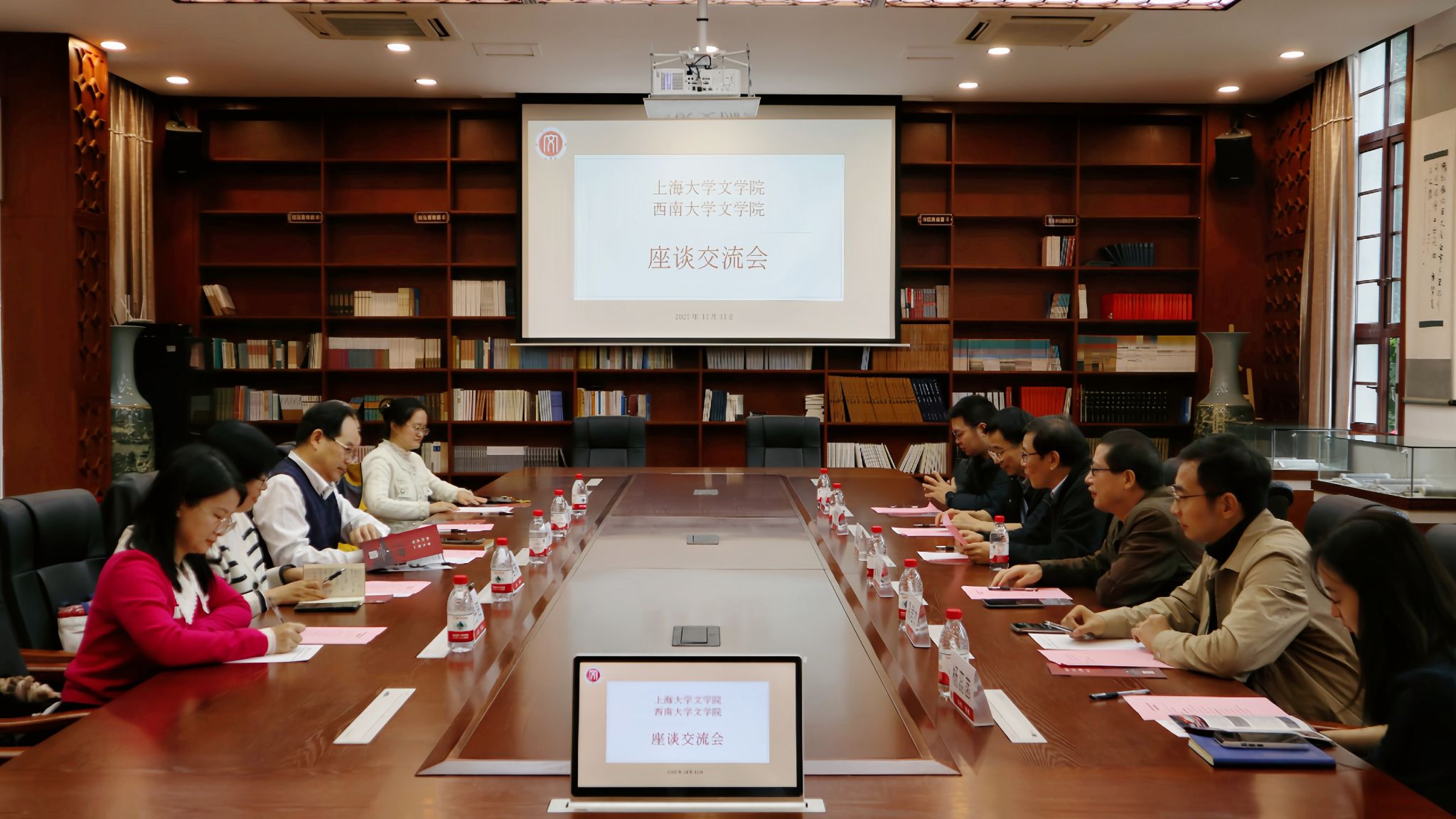 10月31日,上海大学文学院中文系主任张永禄、文化研究系党支部书记朱善杰、办公室主任宋桂林、研究生教学秘书周薇、科研秘书杨丹阳等5人来文学院就“十五五”规划编制情况、教学科研管理等方面进行座谈交流。文学院院长王本朝、副院长张春泉、副院长寇鹏程、办公室主任易君杰、研究生教学秘书、辅导员凌飞、科研秘书杨蕊菡参加座谈交流,会议由张春泉副院长主持。