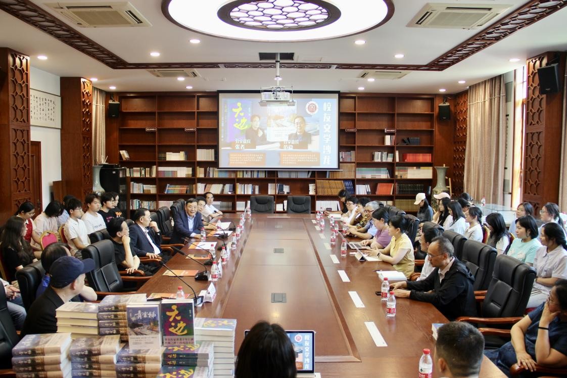 活动伊始,王本朝院长介绍两位作家的基本情况及代表作品,并隆重介绍了两位作家的最新力作《青云梯》和《天边》。活动中,范稳和张者深情回忆,西南师范学院(今西南大学)是他们一代人的精神故乡。范稳回顾了自己创作的启蒙和发展过程,强调行走的经历和拉美魔幻现实主义对自身创作的影响。他表示,文学创作需扎根生活、贴近实际,只有通过深入行走调研,才能让作品兼具思想深度与情感温度。张者分享了自己的文学启蒙往事以及在校期间首创小说社团的图景。谈到文学创作的方法与路径,他提出,青年创作者应坚守文学初心,勇于创新表达形式,用文字记录时代变迁、传递精神力量。