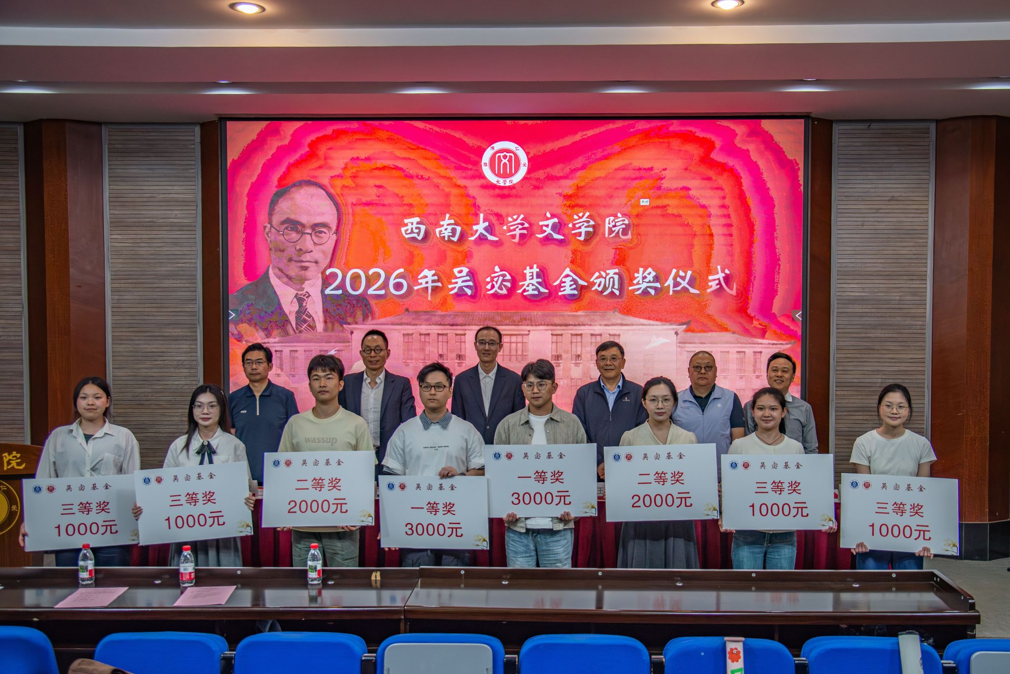 4月17日下午,学院举行“吴宓基金颁奖仪式”。学校党委副书记黄杰、文学院院长王本朝、文学院党委书记秦松、文学院校友张直、杜积西、邹智勇、朱强章等出席颁奖仪式。西南大学文学院“吴宓基金”于西南大学组建10周年暨办学110周年之际,由张直、杜积西、邹智勇、朱强章等文学院校友发起成立,以吴宓先生的名字命名。此次颁奖仪式对在学术研究与文学创作领域取得突出成绩的学子进行了表彰。