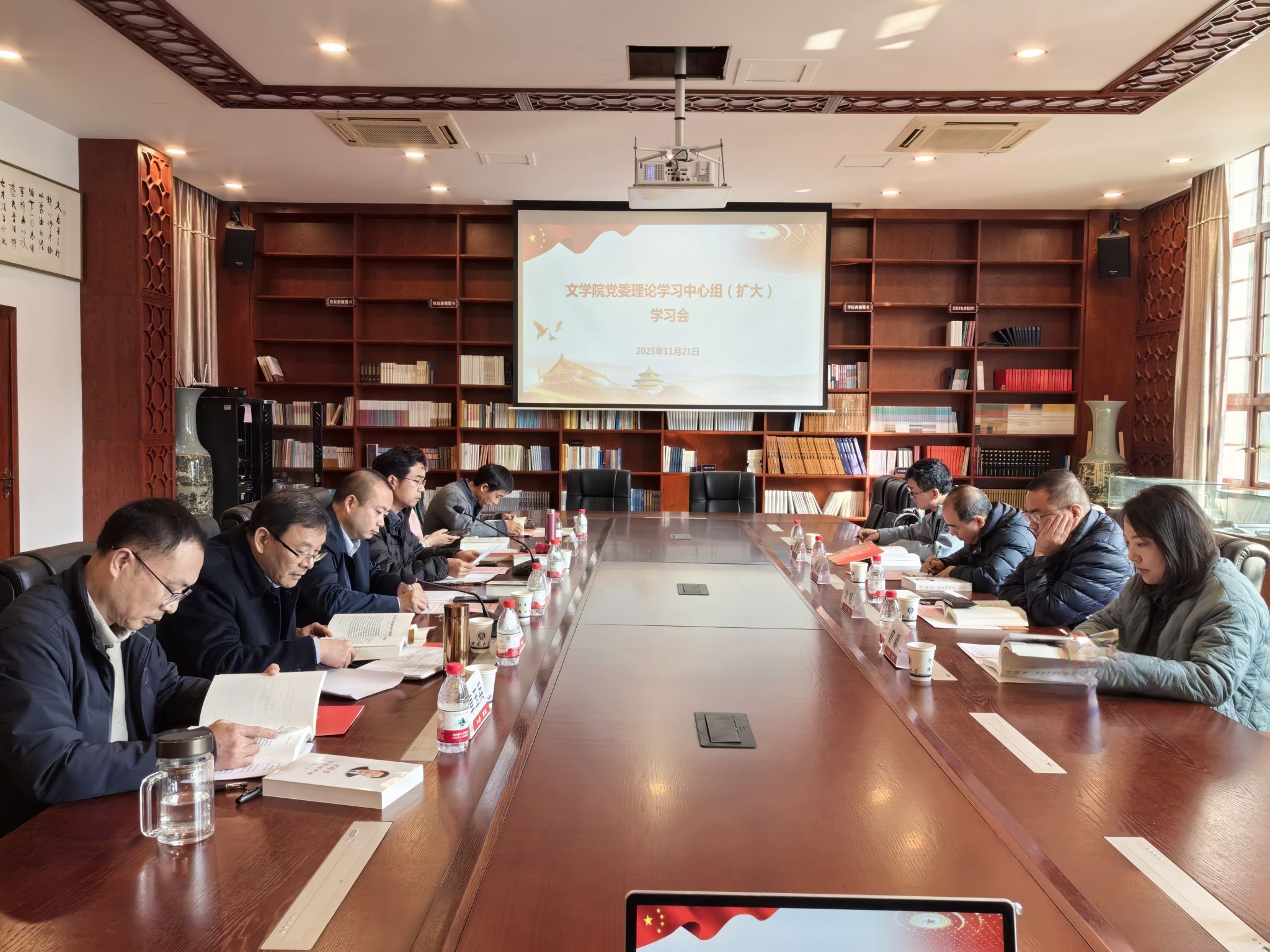 会议围绕党的二十届四中全会精神和《习近平谈治国理政》第五卷进行了深入学习,与会人员交流了学习体会。院长王本朝等表示,要深刻领会中华文明的特性,系统认识“两个结合”的重大意义,在深学细悟习近平文化思想中推动学院学科建设和新时代文学研究“顶天立地”。