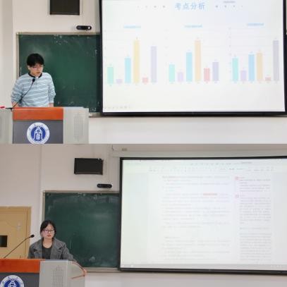 谢楠同学首先围绕现代汉语课程的核心内容,重点讲解语法结构与词汇运用两大模块。他还系统梳理课程知识体系,并结合历年考研真题,解析常见题型与作答要点,帮助在场同学把握重点难点内容。李漫同学以外国文学发展脉络为主线,讲解不同时期文学作品的鉴赏方法,并介绍相关文学理论在解题中的应用。随后,她通过典型例题,详细说明将理论知识与文本分析相结合的方法,为同学们提供可操作的解题方法指导。